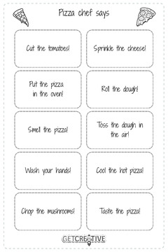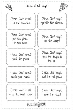 Szablon kart do zabawy Pizza Chef, bazującej na zabawie Simon Says