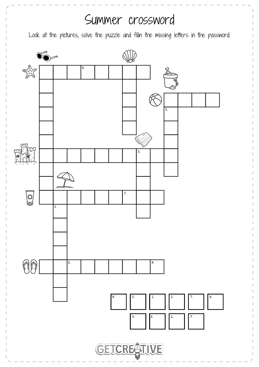 Materiał zawiera krzyżówkę z wakacyjnym słownictwem.