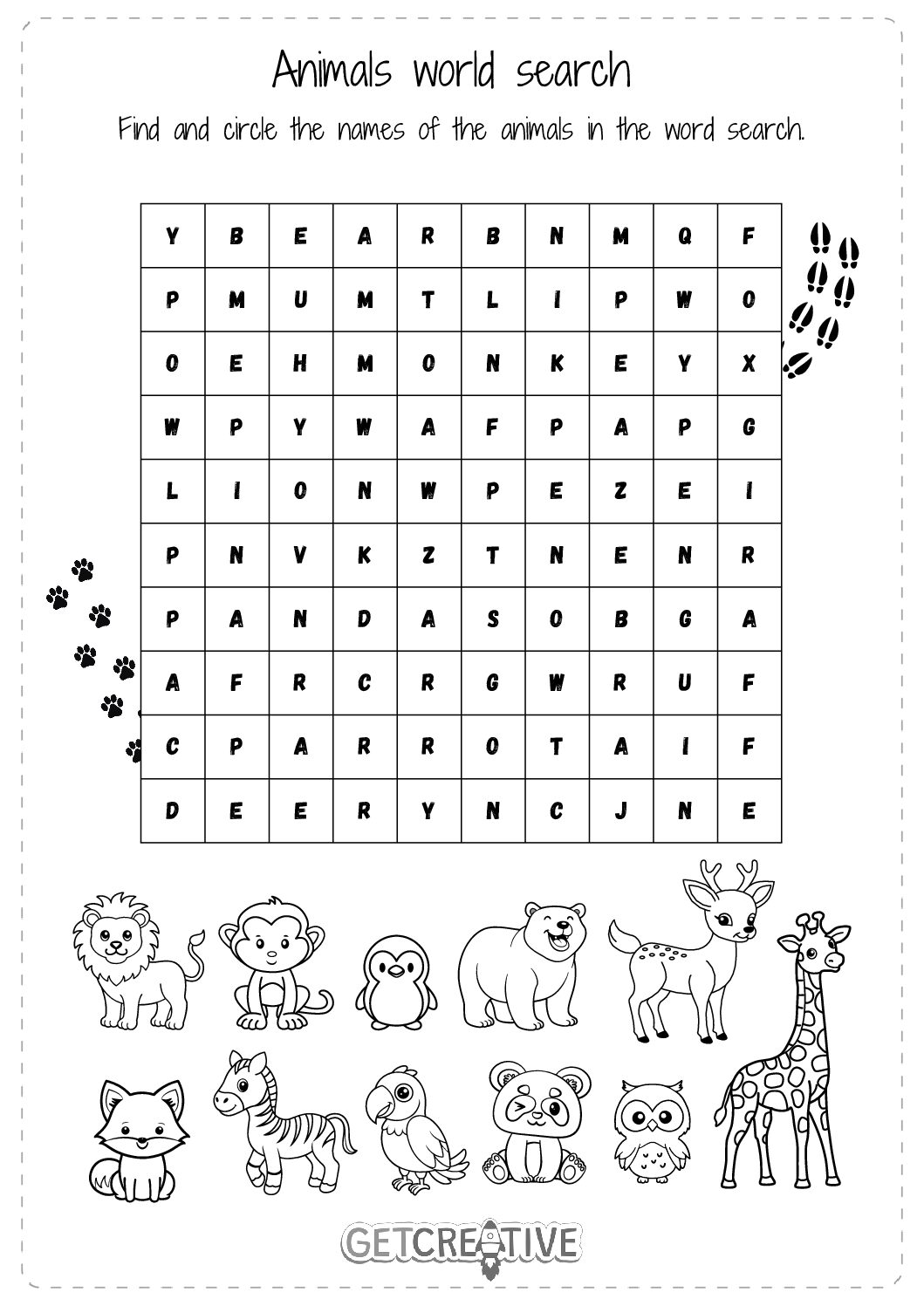 Zadanie polega na znalezieniu nazw zwierząt, które znajdują się pod tabelą