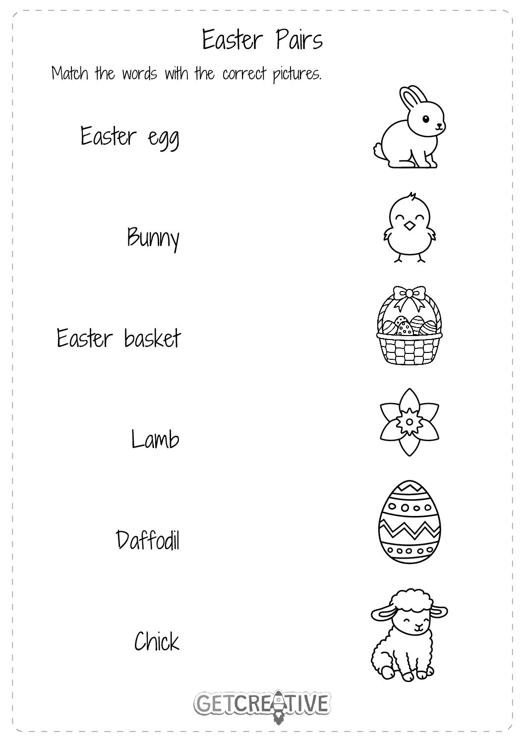 Karta pracy do powtórzenia słownictwa związanego z Wielkanocą. Zadanie polega na połączeni...