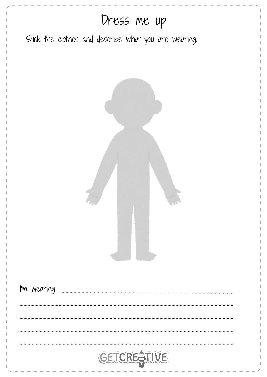 Zadanie polega na przyklejeniu odpowiednich ubrań co sylwetki, która znajduje się na karcie pracy.