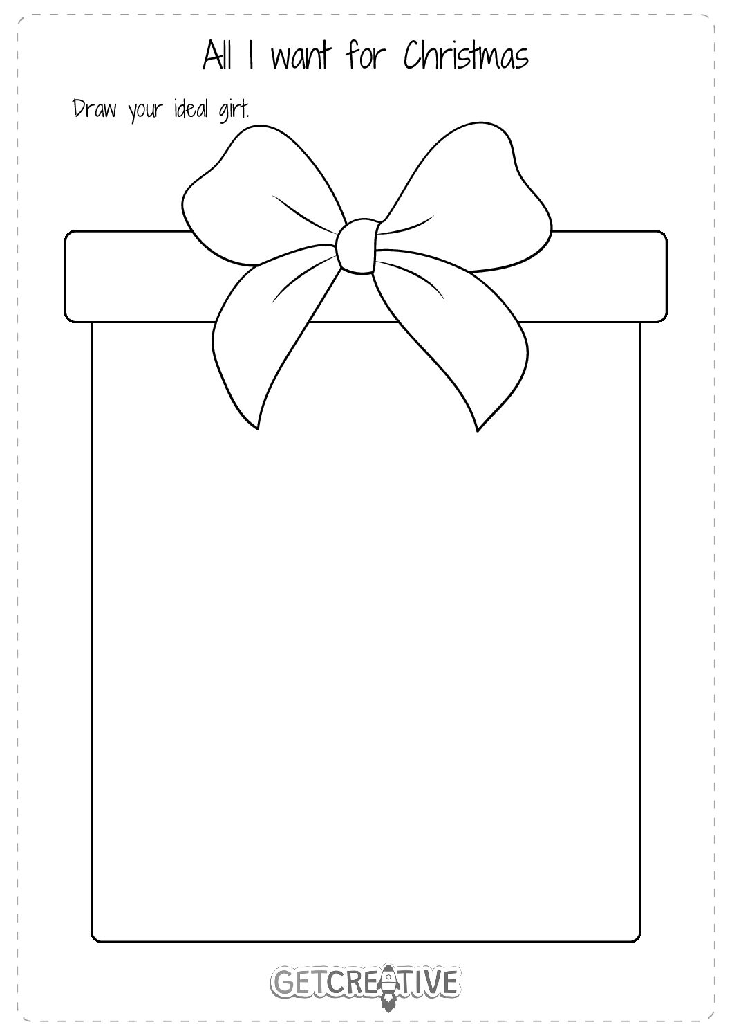 Karta pracy z torebką prezentową na której dzieci mogą narysować swój wymarzony pre...