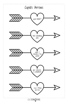 Szablon strzał z walentynkowym zadaniami dla uczniów.