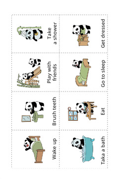 Karty obrazkowe przedstawiające podstawowe czynności.