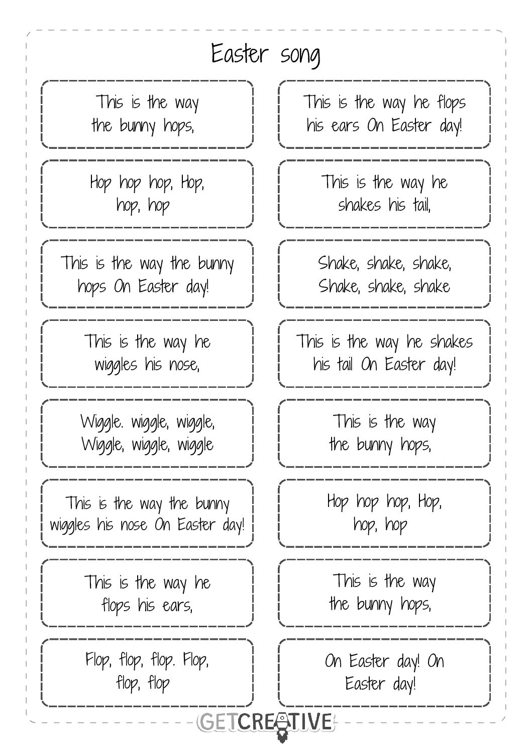 Materiał zawiera piosenkę podzieloną na części, dzieci muszą ułożyć poprawnie zwrotki piosenki. T...