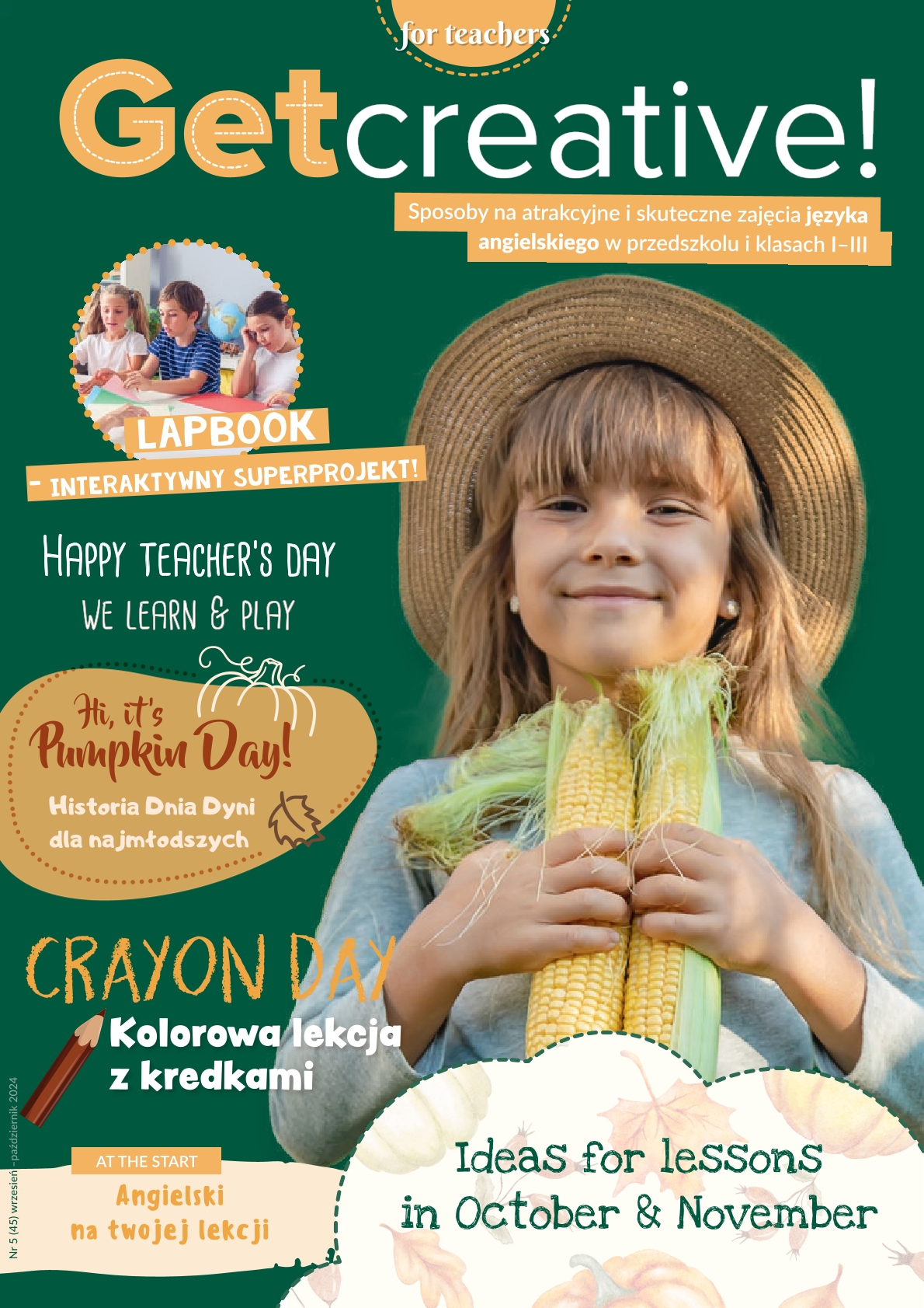 W tym wydaniu nie mogło zabraknąć kilku ważnych świąt. Zapraszam do przeczytania dwóch scenariuszy nawiązujących do Dnia Nauczyciela w dziale Get Inspired. Przygotowaliśmy też dla Was nowy, obszerny materiał temat z rozkładem planu na najbliższe dwa miesiące, a w nim propozycje piosenek, bogaty zestaw słownictwa i aktywizujących zabaw.