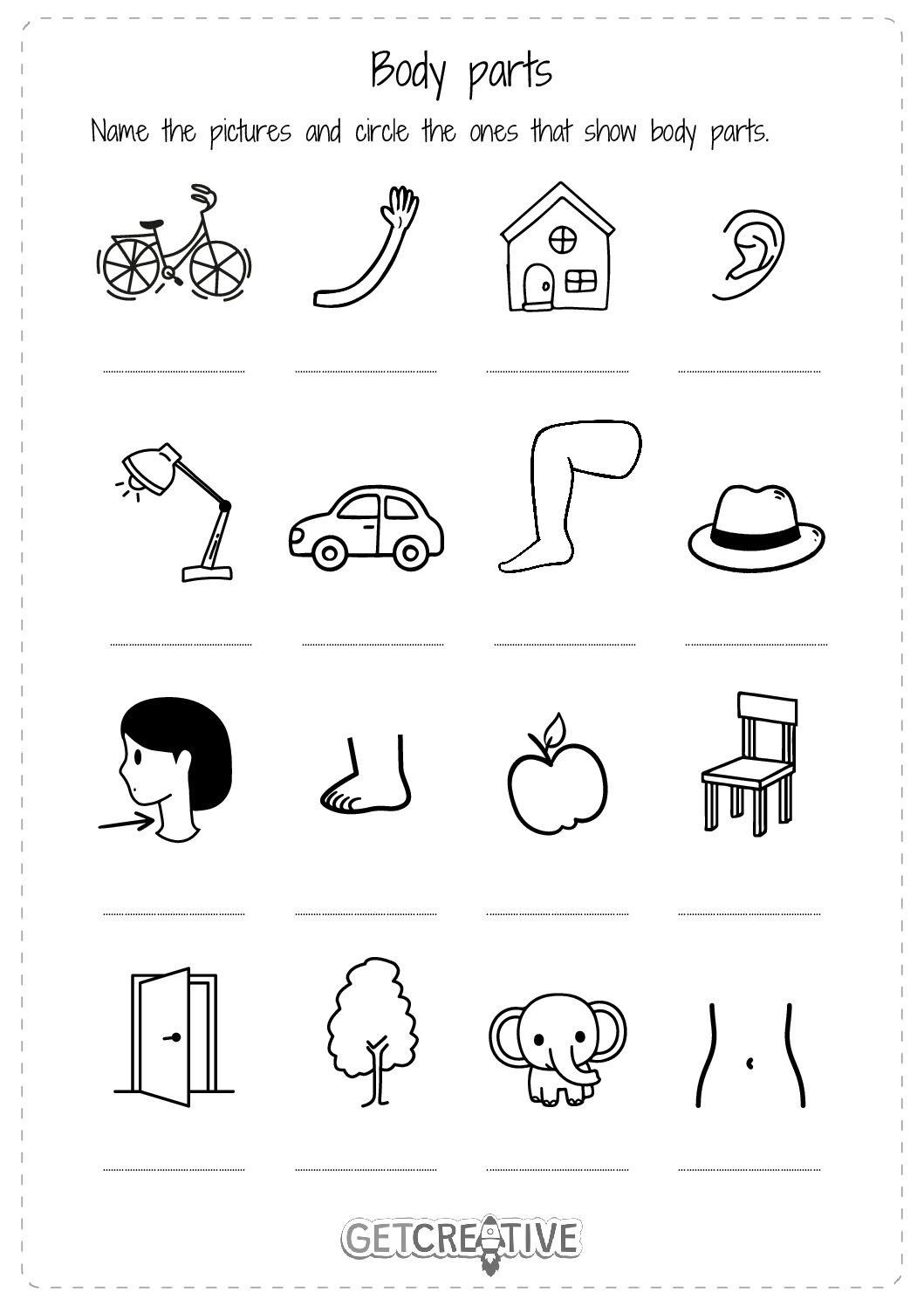 Karta pracy do powtórzenia części ciała. Należy je wyszukać oraz nazwać.